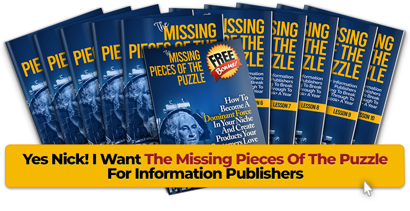 The information in this special report it’s not available anywhere else, but if it was… I’d price it at $100 or more. The information this special report contains is that valuable. But right now, you can get it with my compliments completely free, when you secure your download access to The Missing Pieces Of The Puzzle For Information Publishers today.